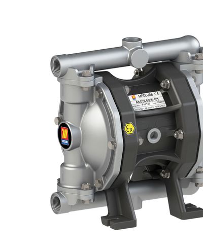 Meclube Model A55 Made in ALUMINIUM Compression ratio: 1:1 Max flow rate: 55 l/min Fluid connections: 1/2 BSP Fluids: Aggressive fluids (acids and basics)